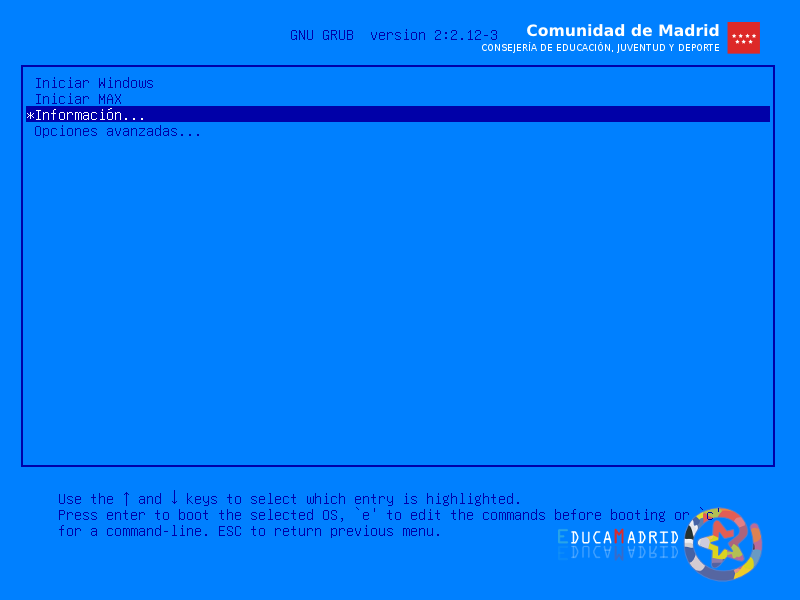 En el siguiente video se muestra las primeras fases del proceso de instalción de MAX12 (en el vídeo la partición para MAX es la sda6):